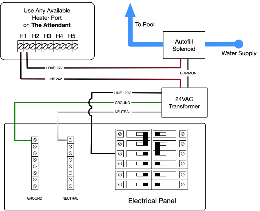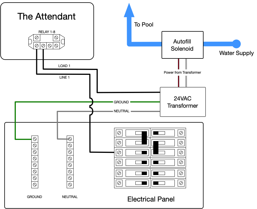 To utilize the Autofill system in The Attendant, you’ll need a method for sensing the water level and a mechanism to automatically fill the pool and/or spa.