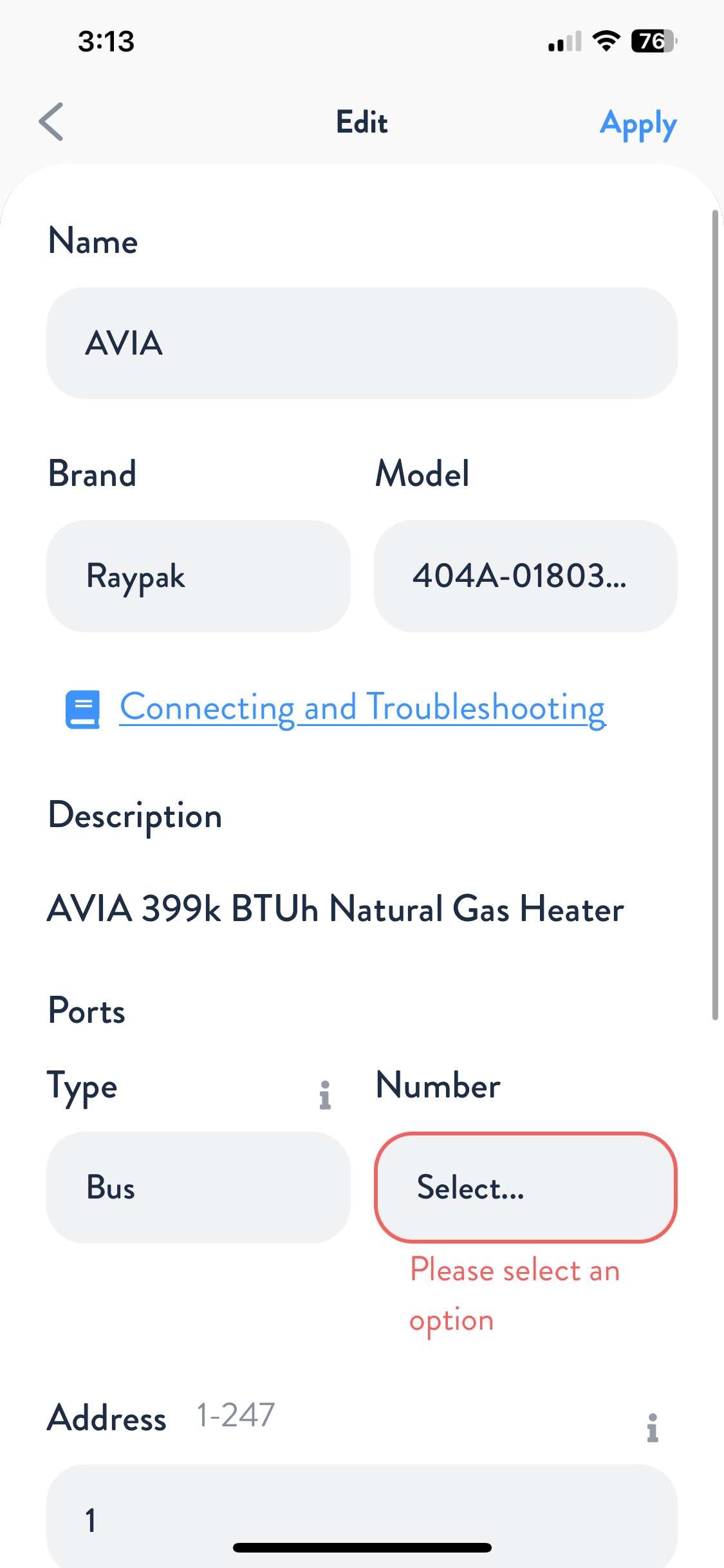 Rename the heater, then choose Raypak as the brand and select the applicable model number.
